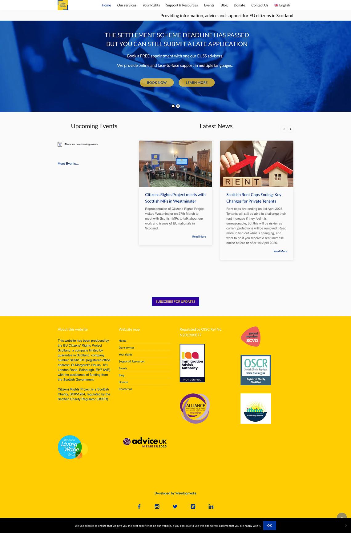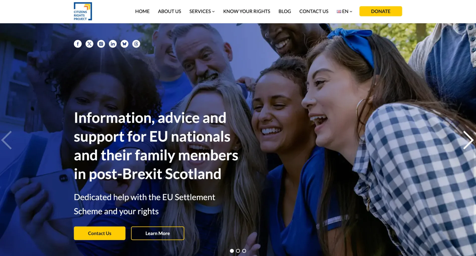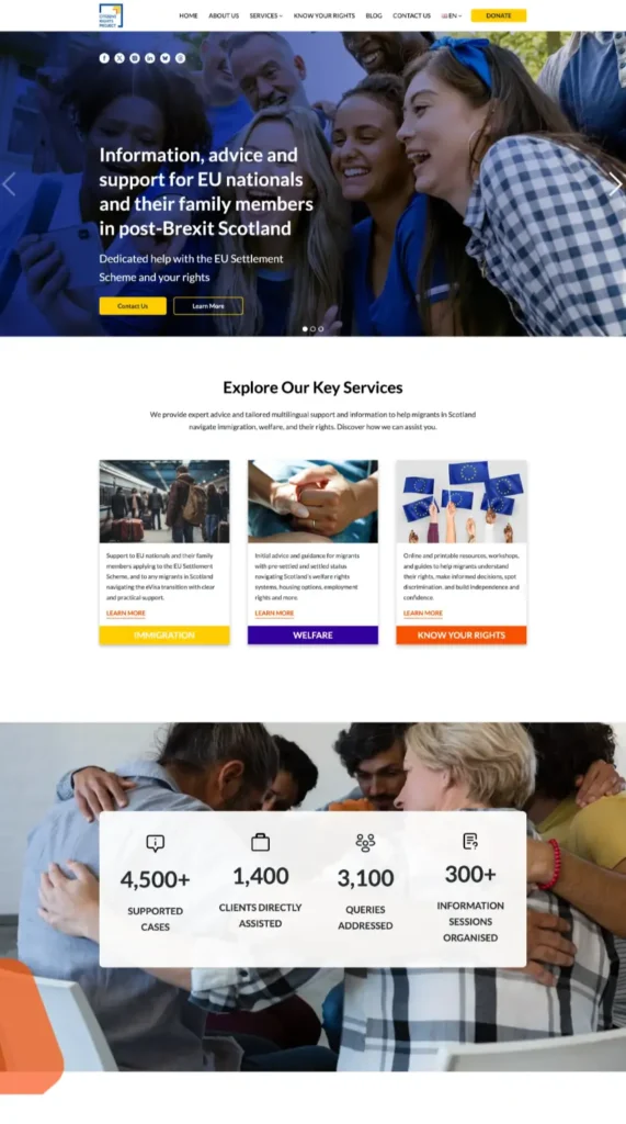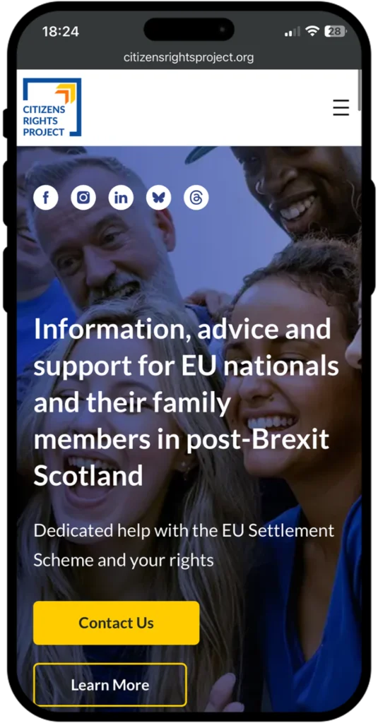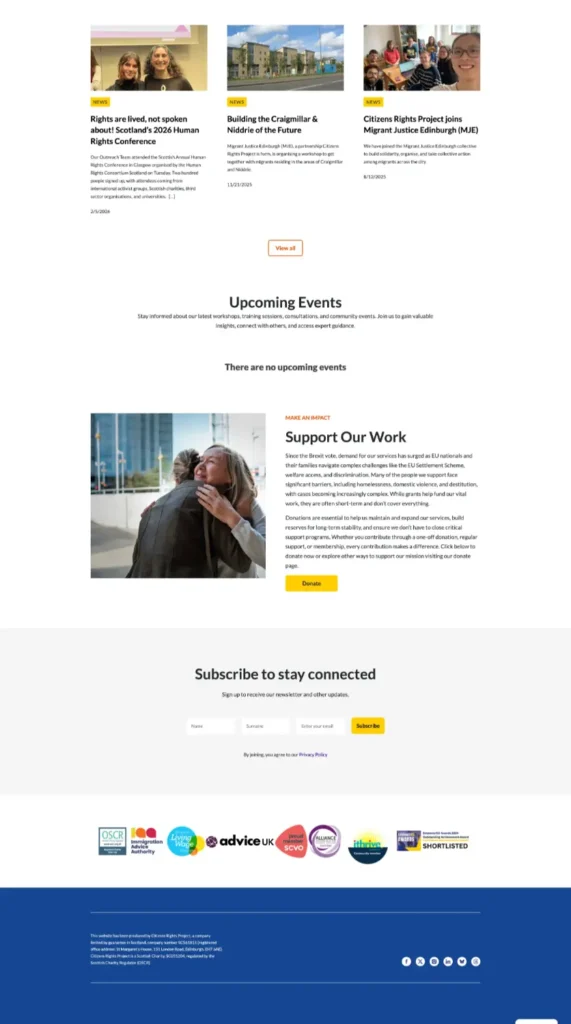 Citizen Rights Project came to us through Svetlana, who had been handling their graphic design work — social media, banners, brand assets. When they secured a budget for a full website, they asked if we could build what Svetlana had designed. We were honest: we could build the core site, but a fully customised event calendar and an 11-language multilingual system were beyond what we could commit to at the time.